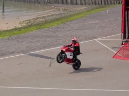 Ce genre d'exploit arrive souvent en stunt sur des figures assez lentes, mais sur une piste de vitesse... Pour moi c'est truqué, surtout...