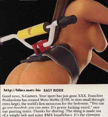 MotoDivers (moto)NSFW Pilotez votre femme 23 mars 2010 8 FacebookTwitterWhatsApp Voici le sex toy digne des meilleurs fantasmes de motard ! Un guidon ceinture à harnacher sur sa compagne pour la piloter au lit ! Avec ça tout est permis, même les wheelings en levrette… Des personnes intéressées par une commande groupée?!